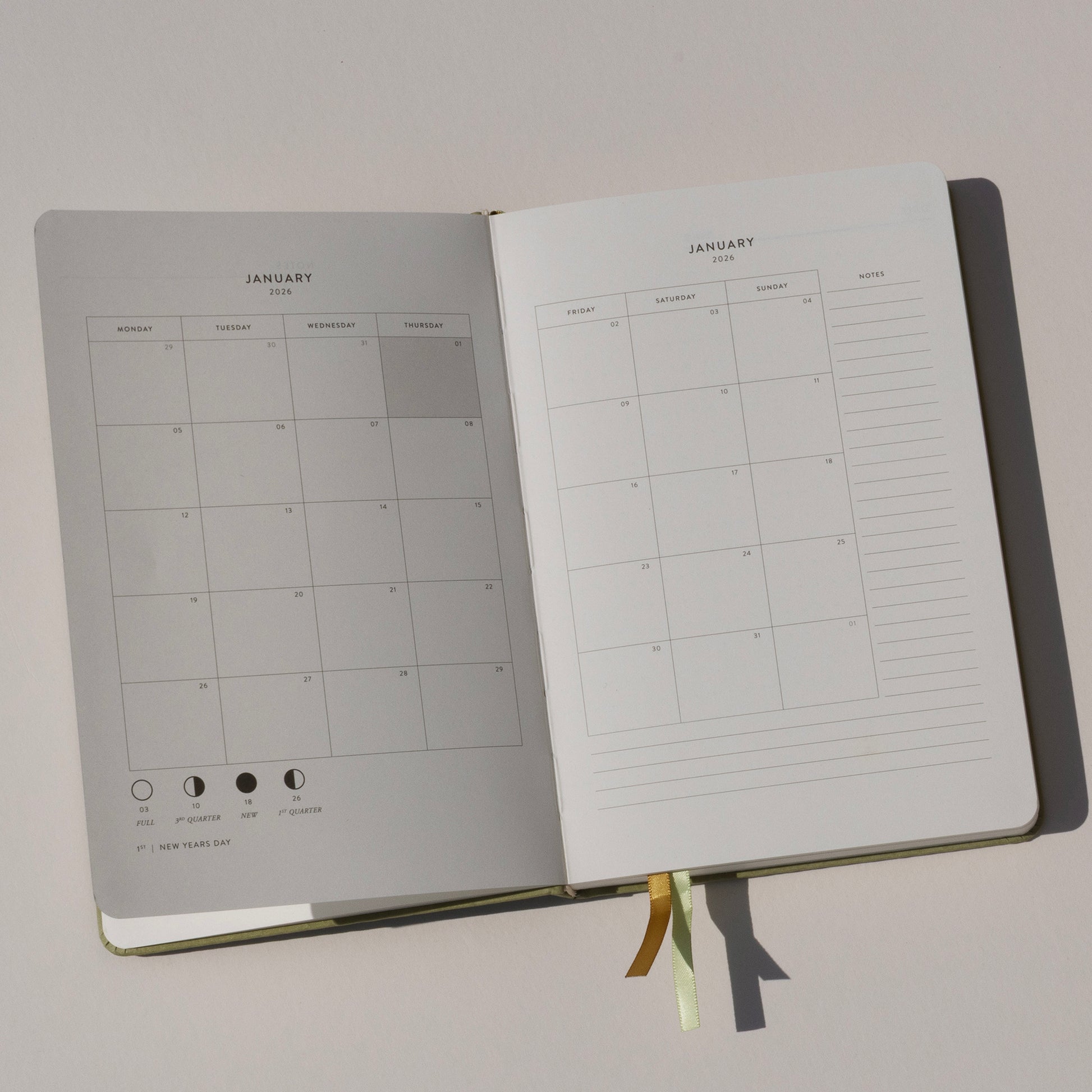 ✨ New for 2026: now featuring two silky ribbon markers, five new colourways, and a set of playful sticker sheets with both an alphabet set and reminder icons for marking birthdays, meetings, and celebrations.
